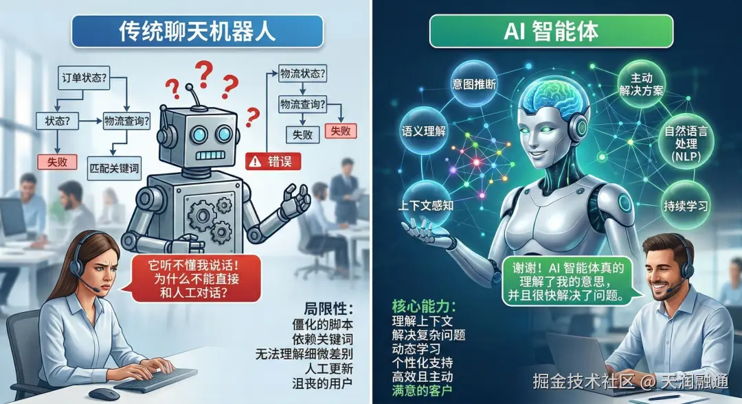 传统客服体系,本质是人力规模驱动;智能体体系,是算法效率驱动。前者靠堆人,后者靠结构。
