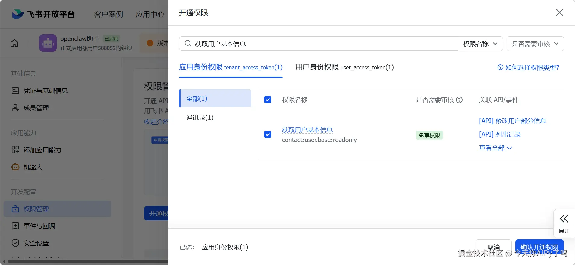 ▲ 按照 AiPy 的清单,在飞书后台勾选权限