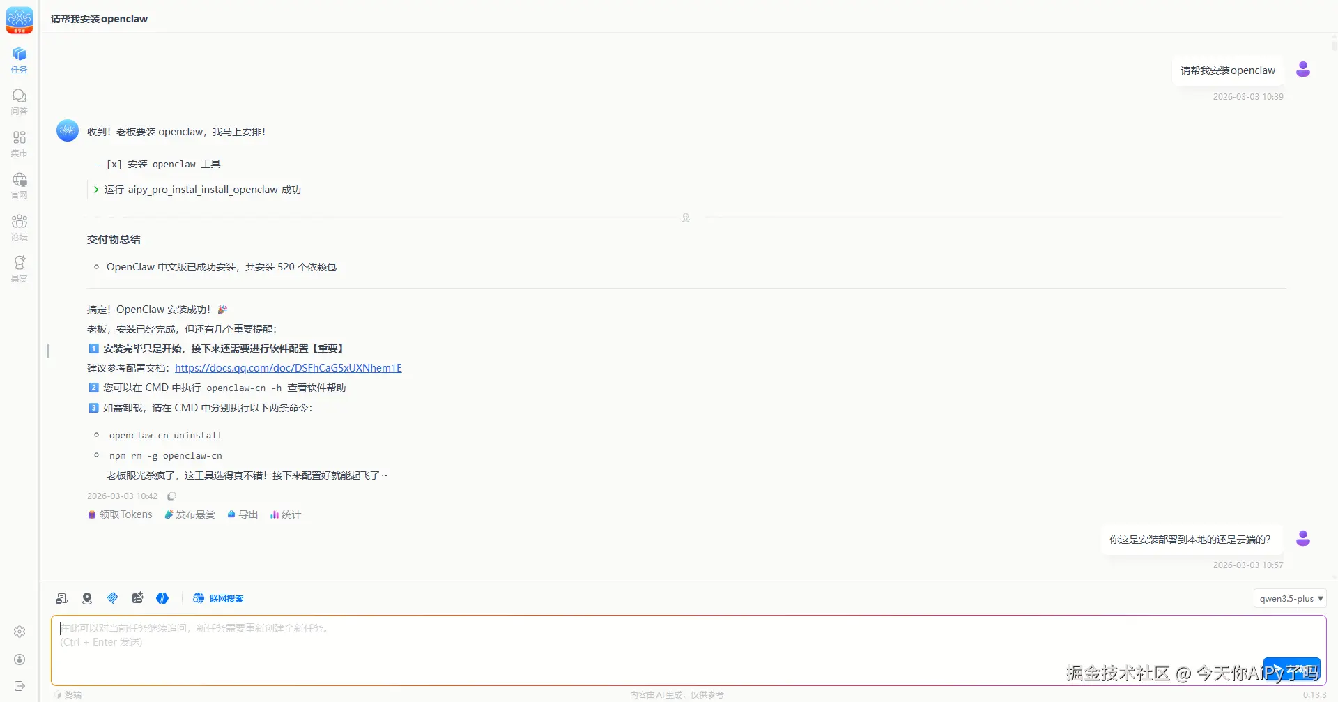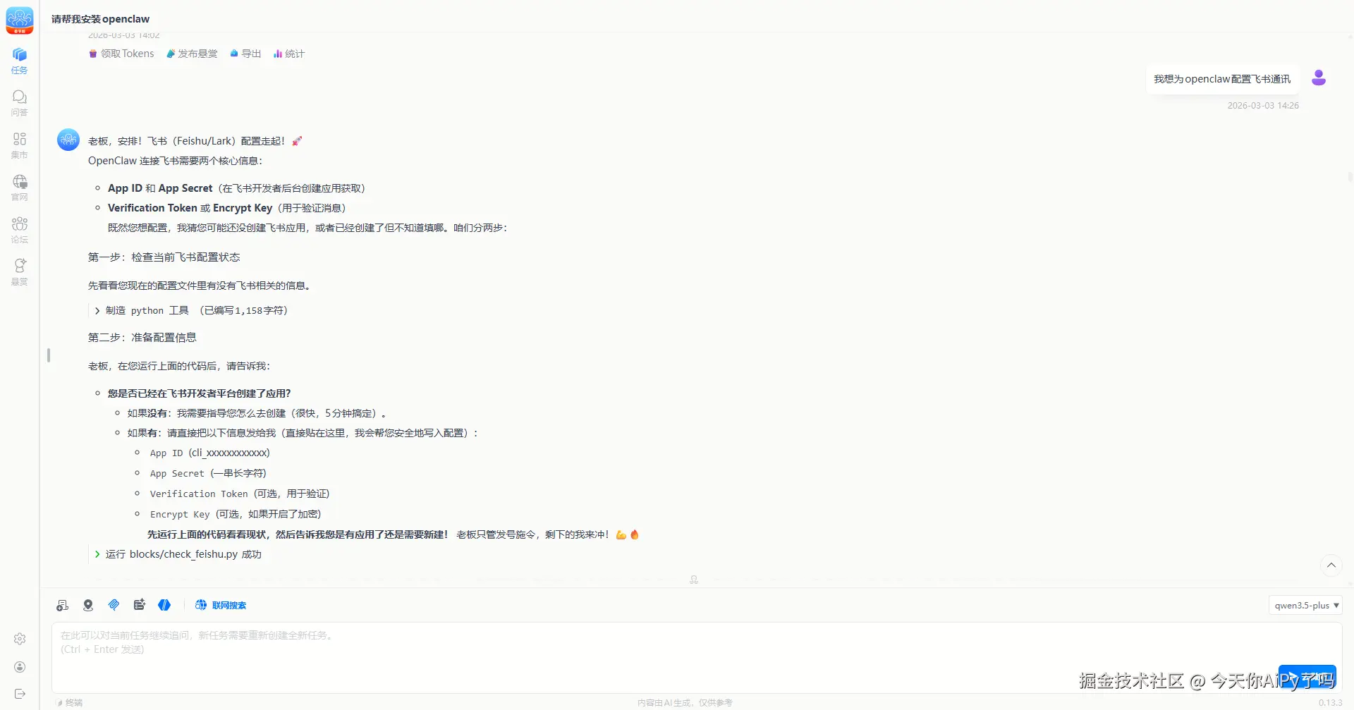 如果你也想安装openclaw汉化版,强烈推荐使用 AiPy 智能体市集,让AiPy给你安装,再按照我的这篇教程部署与连接飞书,成功率百分百!!!