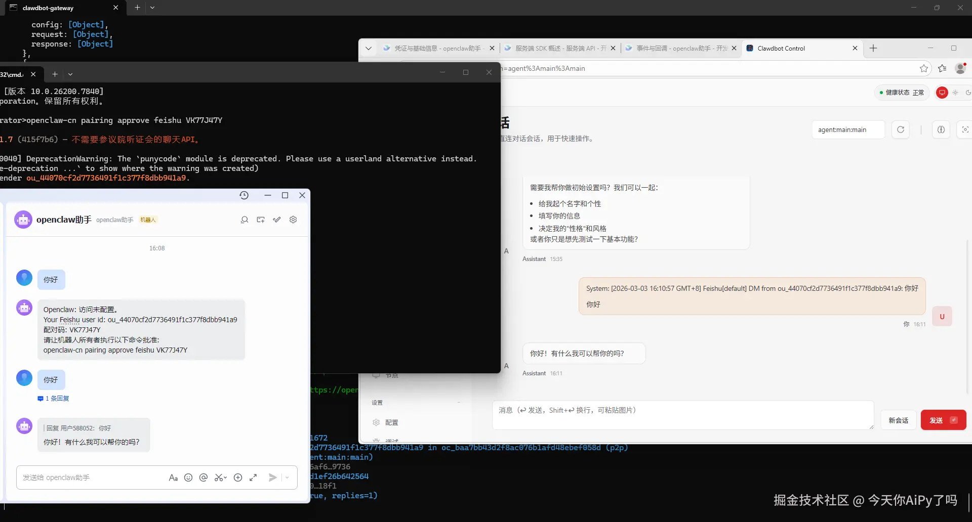 想装个 OpenClaw 汉化版,结果卡在网关启动?满屏红色报错让人想砸键盘?别慌!这次我不再死磕文档,直接召唤 AiPy 智能体 当“外挂”。从自动安装环境、修复网关配置,到手把手教我接入飞书实现手机随时聊,全程不用动脑,看着它一顿操作猛如虎,直接把“拦路虎”变成了“纸老虎”!😭🚀 这篇复盘,专治各种“安装焦虑”,建议收藏备用!(本电脑为Windows 11)
