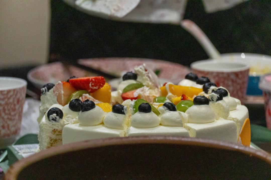 过去只是稍微吃了一点东西,毕竟真的已经很晚了,他们还愿意等我就已经很谢天谢地了。还吃了一块荣姐的生日蛋糕。