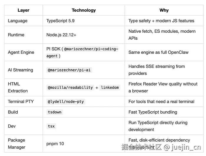 它拥有与完整 OpenClaw 平台相同的智能,只是被提炼到了本质。没有 UI,没有通道,没有部署。