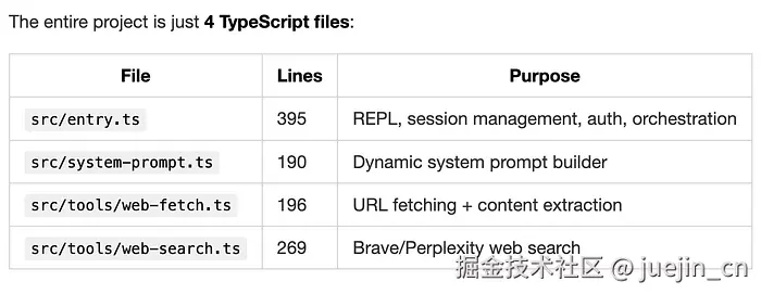 openclaw-mini 证明了强大的 AI 编码智能体不需要复杂。通过借助 PI SDK 进行重负载处理,并添加一层 REPL、认证、系统提示和 Web 工具,你只需大约 1,000 行 TypeScript 代码(分布在 4 个文件中)就能得到一个功能完备的终端助手。