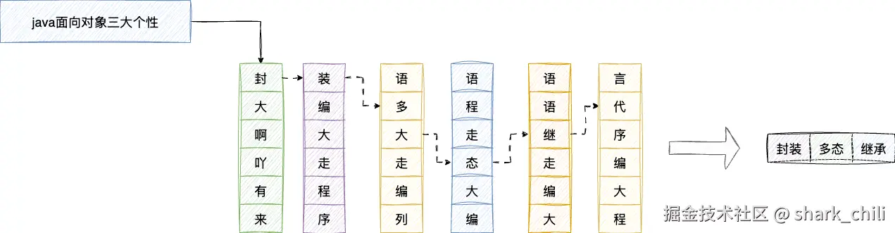 我们举个具体的例子:当用户询问Java面向对象三大特性,模型的工作步骤为: