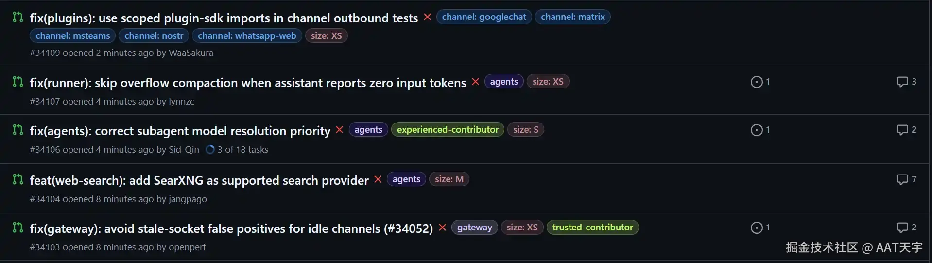 - openclaw-barnacle 机器人闪电般打上 size: S 标签