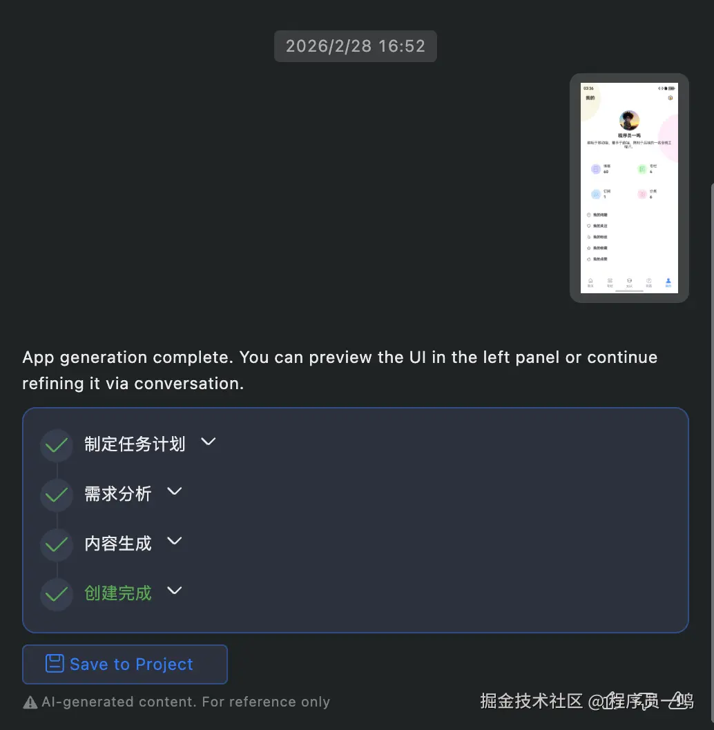 页面功能生成之后,并不一定需要直接保存到项目,你可以根据预览效果,可以在输入框中,进行多次询问,如,增加功能,修改功能,删除功能等,直至达到你的满意度后,再保存到项目。