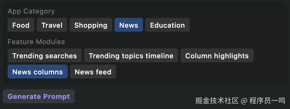 或者在输入框中,输入反斜杠“/”后,选择Generate UI Code。