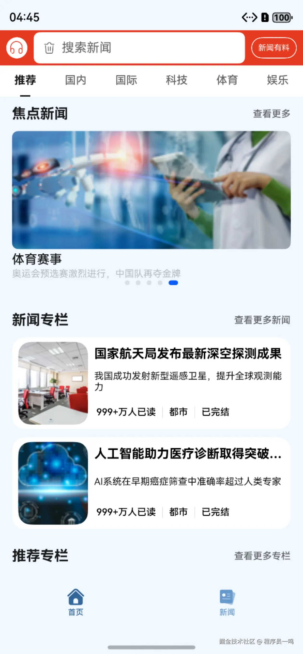 每个领域,点击后,都有很多的功能模块,比如新闻下有:热门搜索、热门话题、时间线、专栏亮点、新闻专栏、新闻推送。