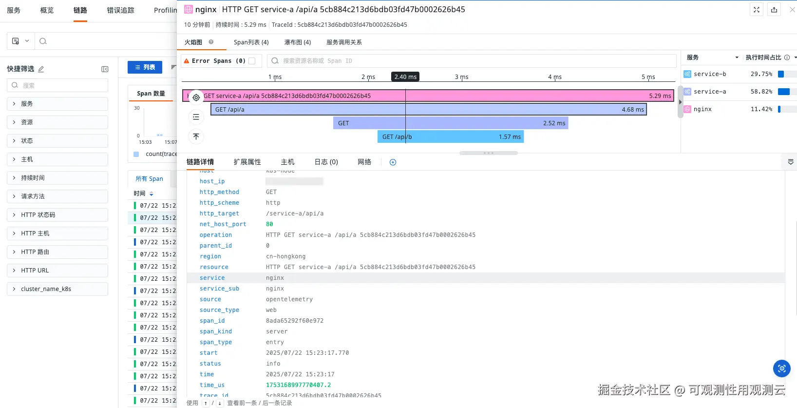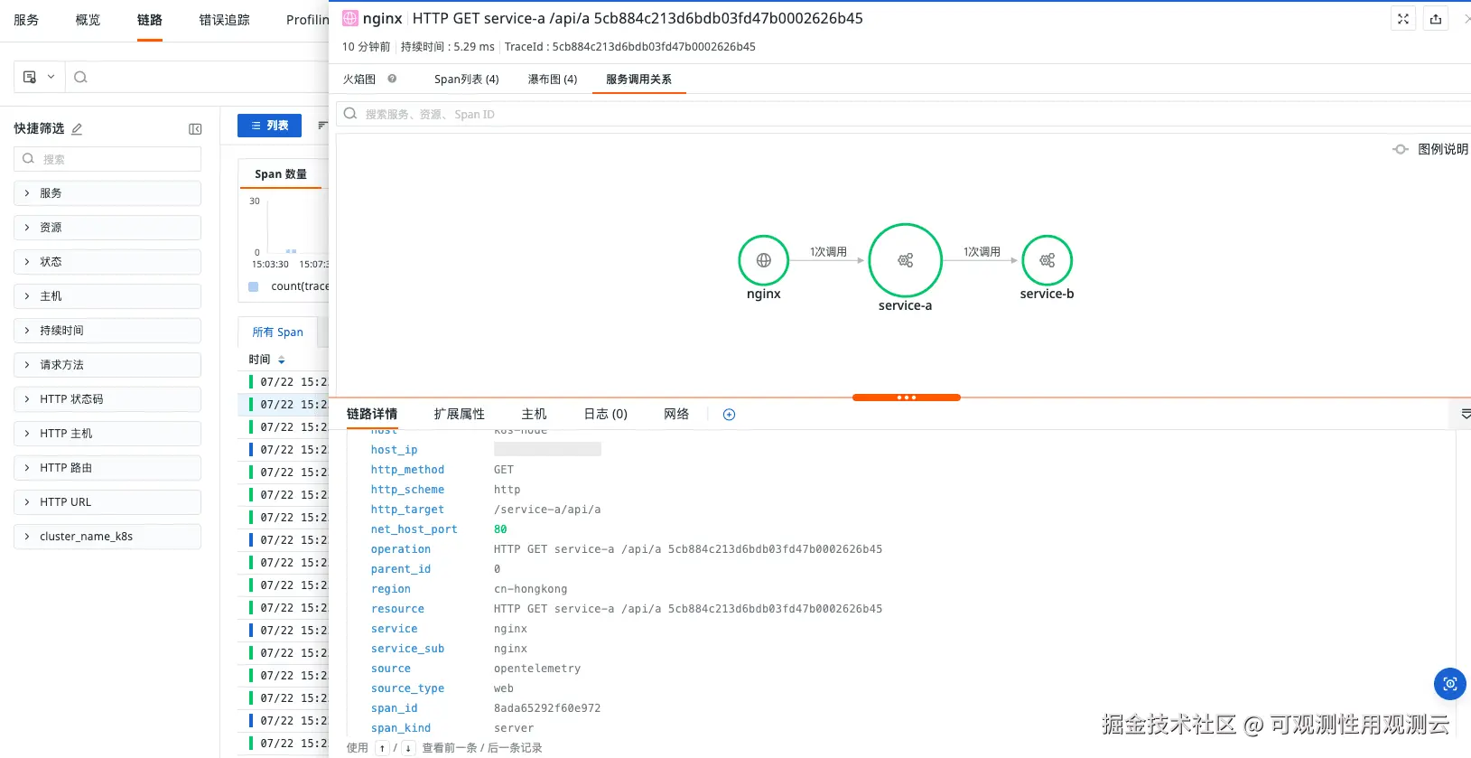 到观测云控制台「应用性能监测」,可以看到 Ingress-Nginx 链路数据正常上报。