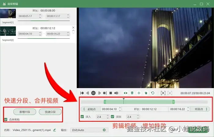 步骤3:录制结束后,还可利用软件的高级编辑功能,例如对视频进行重命名、快速分割等后期处理。