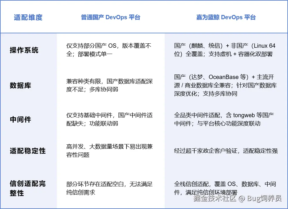 数据库作为数据存储核心,其适配能力直接影响 DevOps 平台的数据分析、日志存储、资产管理等核心功能的稳定性,差异主要集中在兼容种类、国产化适配深度两个维度: