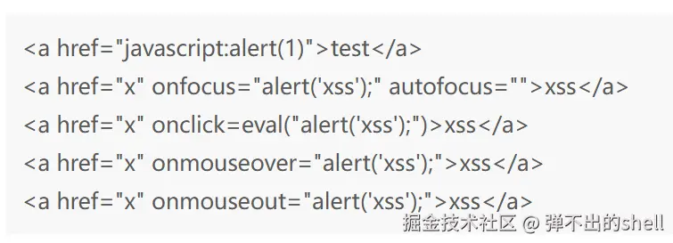 ① 用在 href 属性里 | javascript:alert(1) 不含特殊字符,不会被转义 |