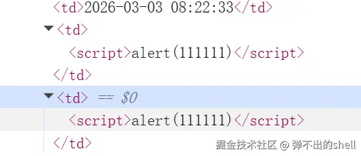 - 查看源代码,可以看到之前写入的 XSS 代码已被执行