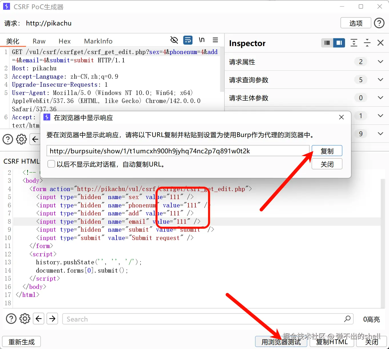 - 在 Burp 中右键 → 生成 CSRF PoC