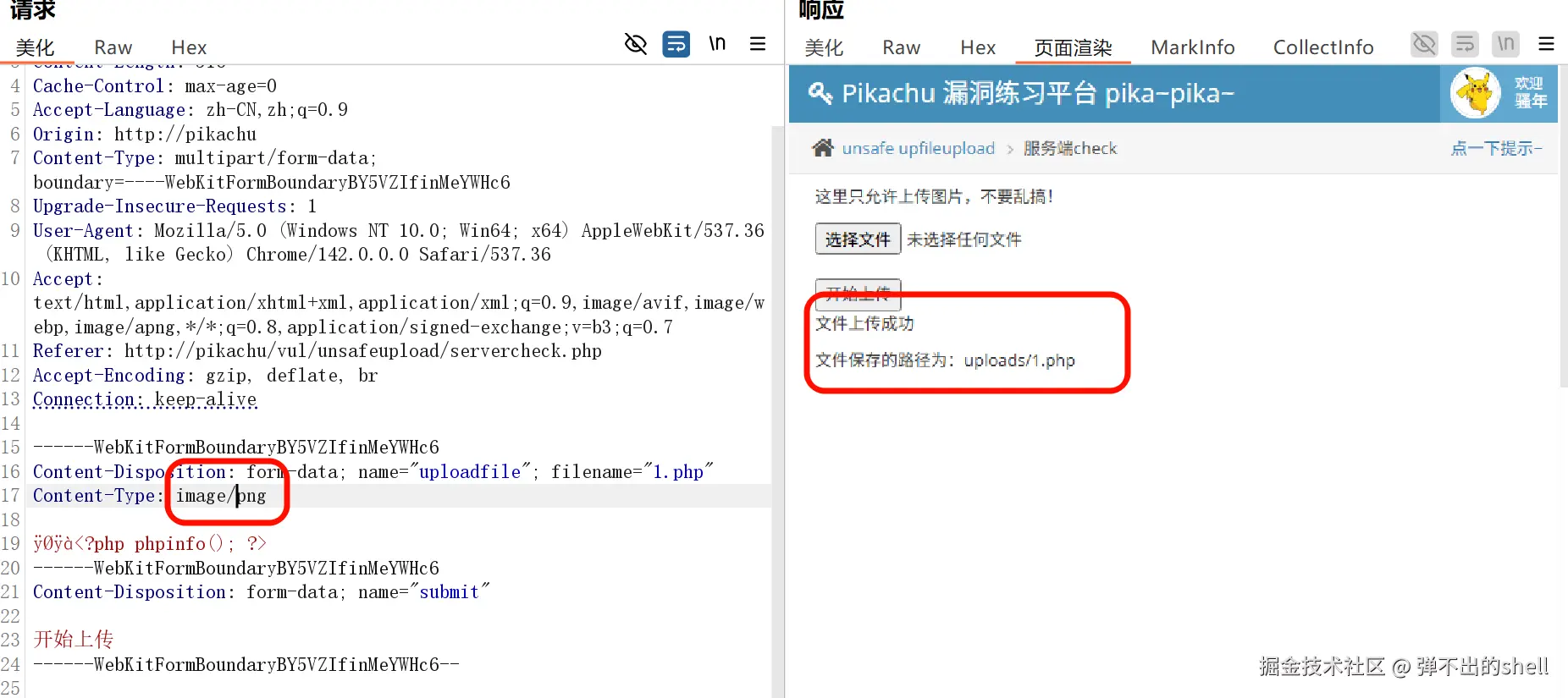 📖 概念: getimagesize() 通过读取文件头来判断是否是合法图片,可制作图片马(在图片文件末尾附加 PHP 代码)来绕过。