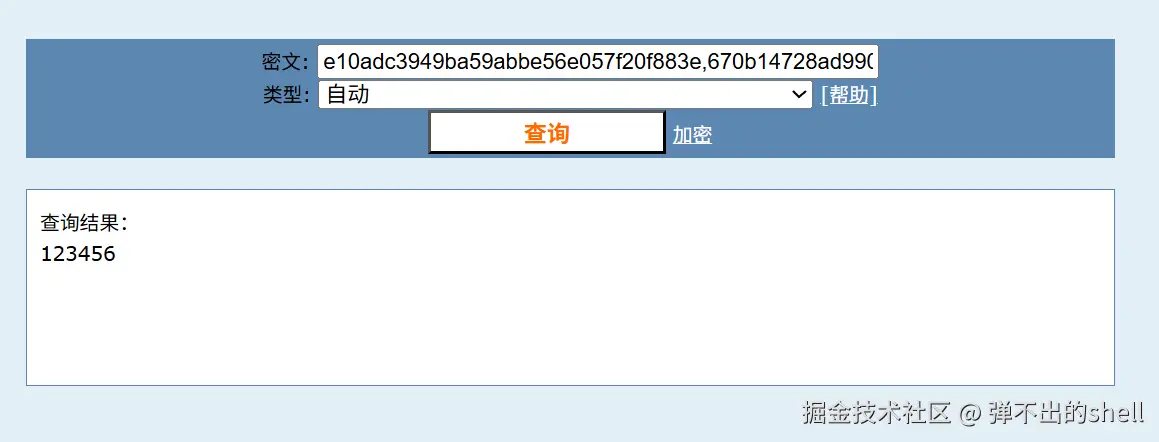 - 密码经过 MD5 加密,使用在线工具解密:www.cmd5.com/
