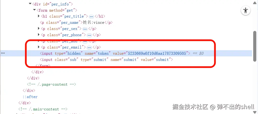 🔍 查看源代码: 发现 Token 存储在前端 HTML 中