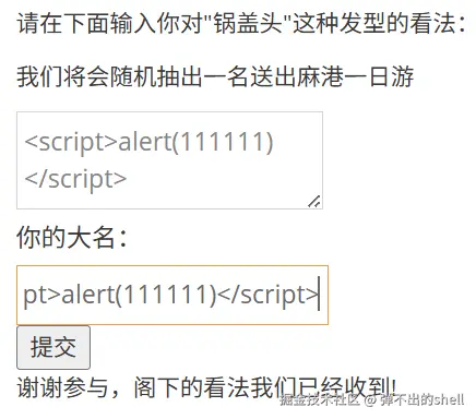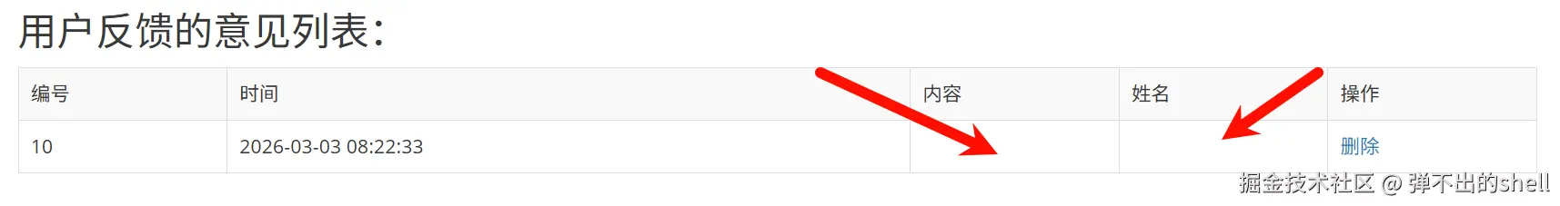 - 在前台随意输入内容提交(包含 XSS Payload)