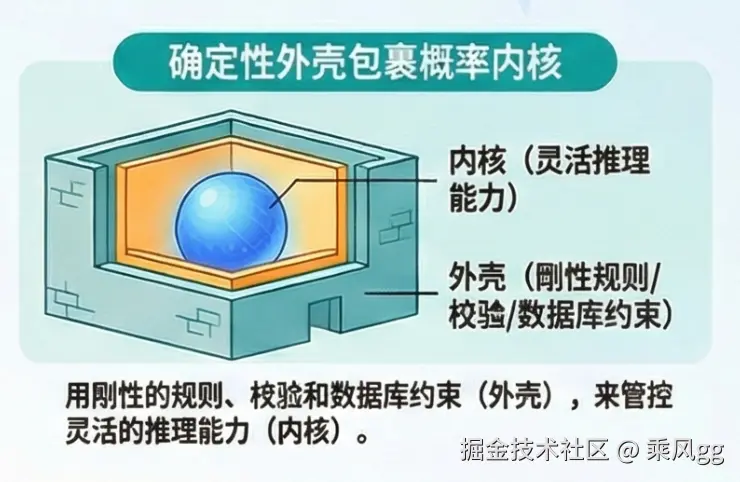 - LLM 必须运行在确定性外壳内