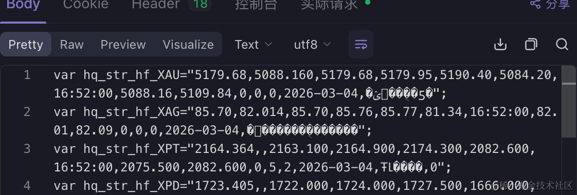 有些接口返回的结果中编码格式竟然是GBK编码,导致结果可能出现中文乱码: