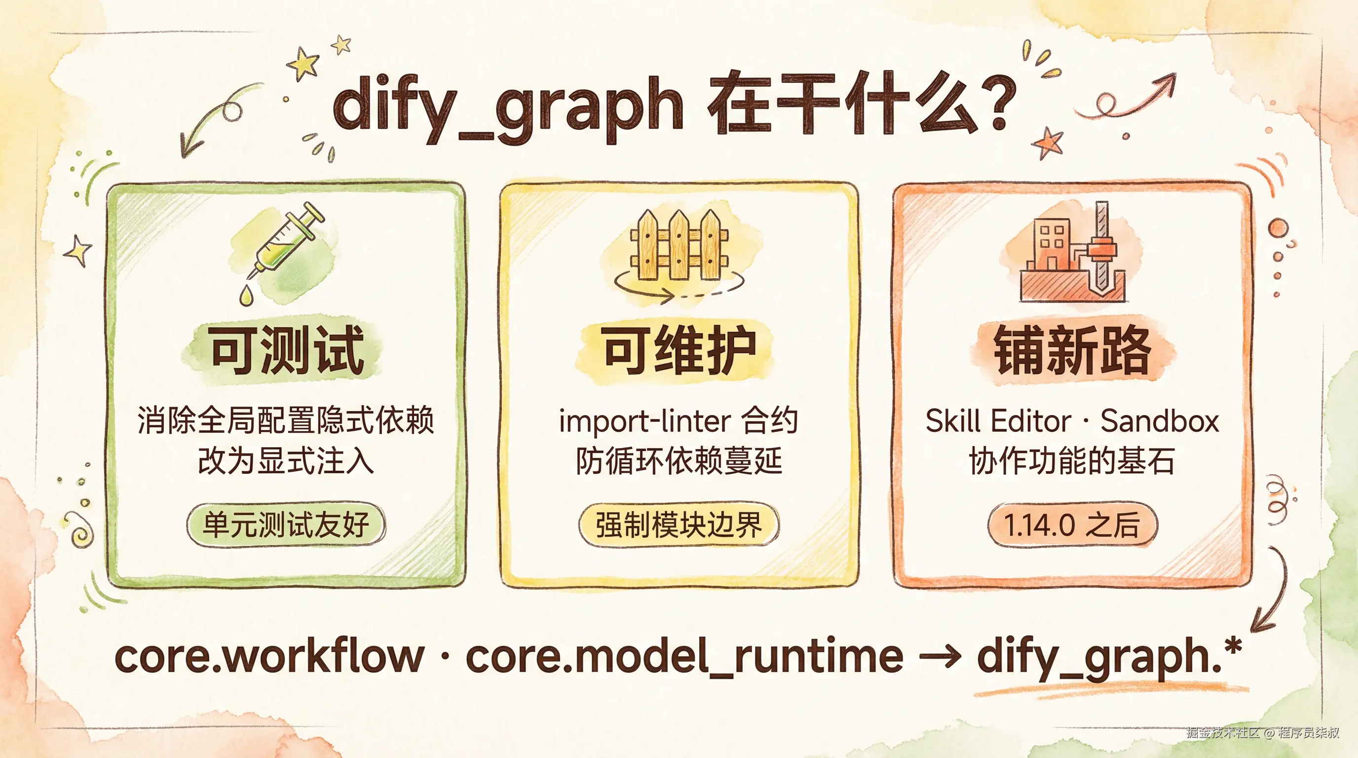 import-linter合约强制执行模块边界,防止循环依赖蔓延 - 为 Agent × Skills 铺路 — 1.14.0 引入的 Skill Editor、Sandbox、协作等功能需要更稳固的图执行基础