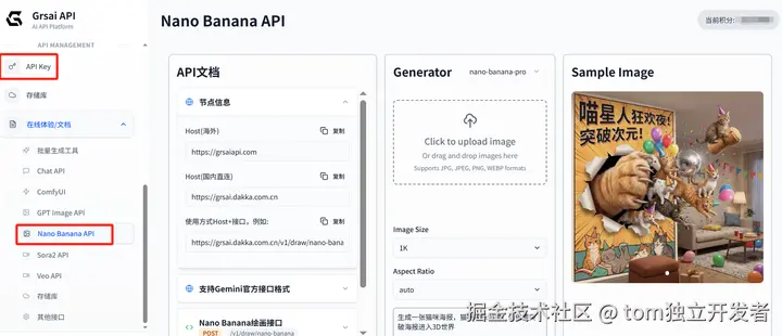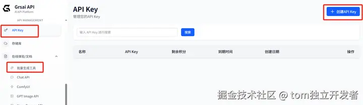 - 创建API key:grsai.com/zh/dashboard/api-keys(com域名要魔法,没有改ai)