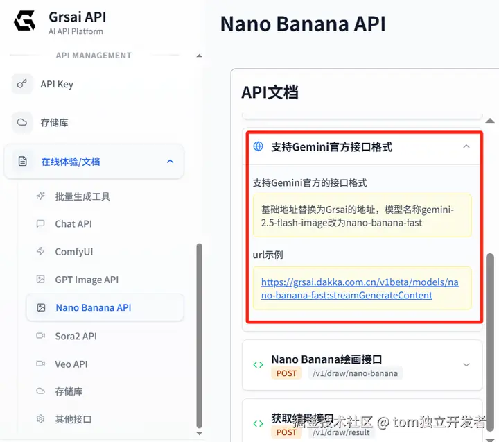 Grsai APi(grsai.ai com域名需要魔法,没有改成ai国内可访问)作为海外主流 AI 模型的源头聚合平台,Grsai 去除了中间环节,价格比官方更低。针对国内开发者直连谷歌 API 的网络延迟和高并发难题,Grsai 提供高并发支持、失败秒退保障,模型效果与官方一致,且兼容 Gemini 格式调用,帮你大幅降低总拥有成本。