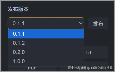 下面呢,就是发布版本,自动根据当前项目版本,提供了小版本,中版本,大版本选择。