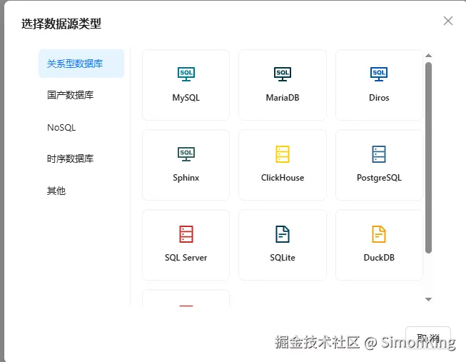 支持主流的数据库,包括关系型数据库和非关系型: