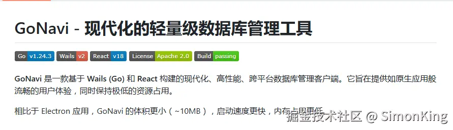 今天,无意间又发现一款轻量级的数据库管理工具:GoNavi
