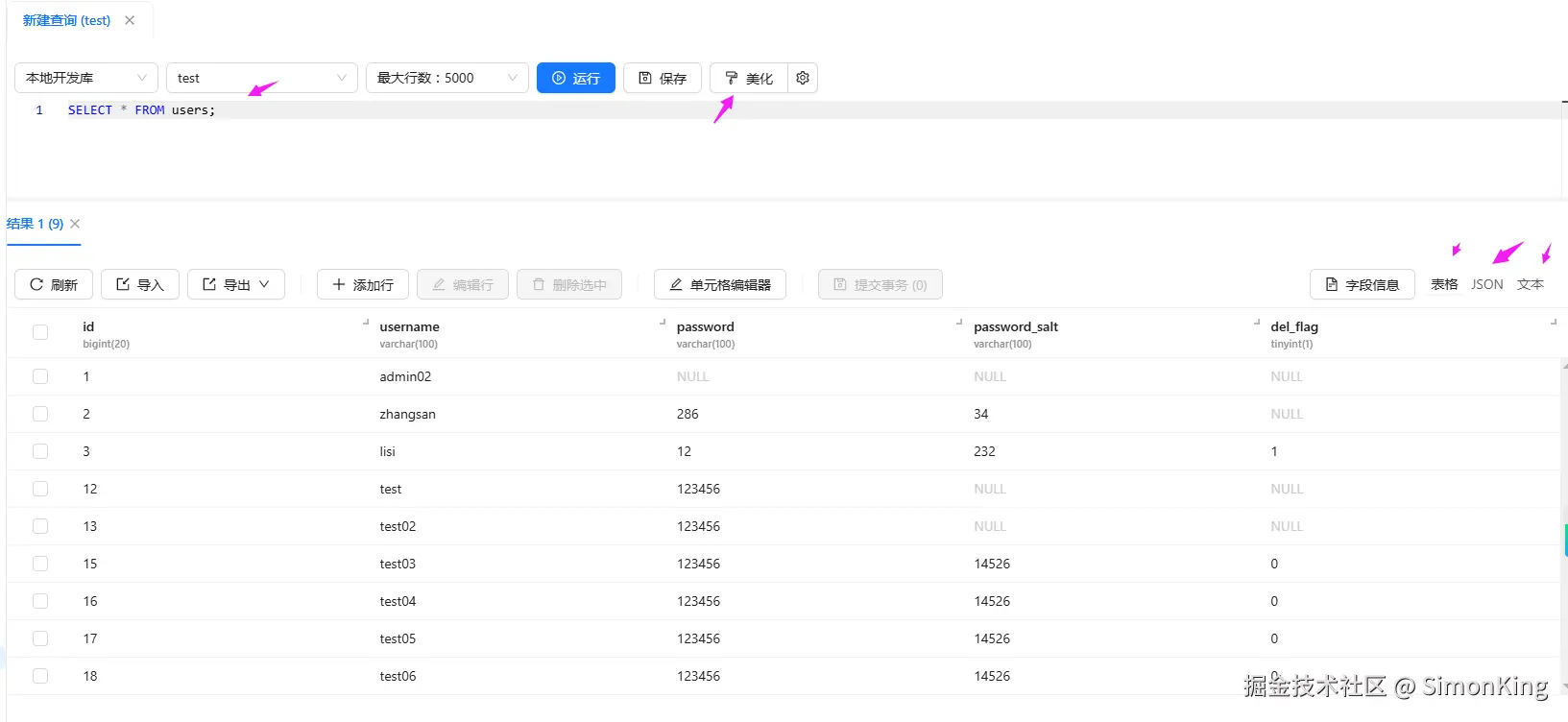 SQL语句的查询高亮显示,有提示功能,还支持美化。查询的结果可以表格、JSON、文本三种展示形式。