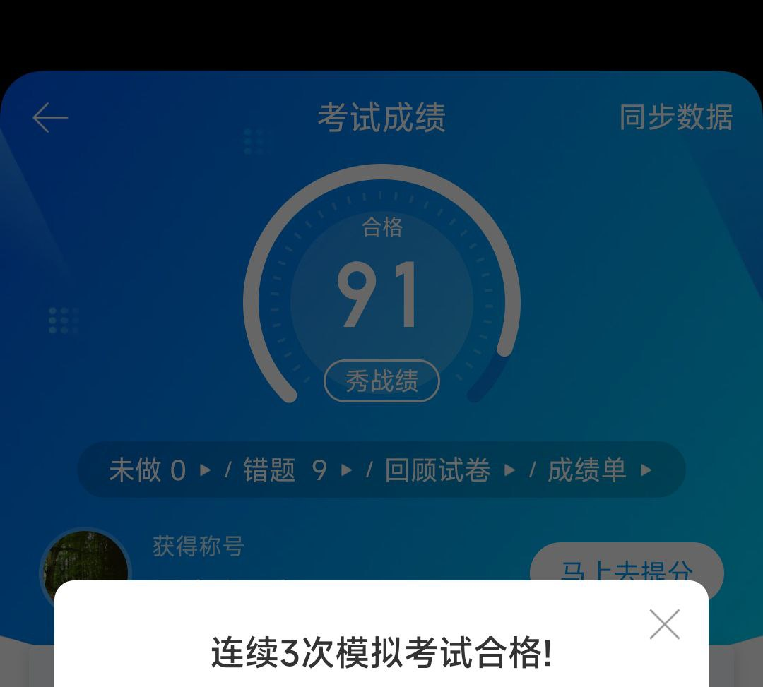 2. 又刷了一套科目一,第三次 90 分以上了。
