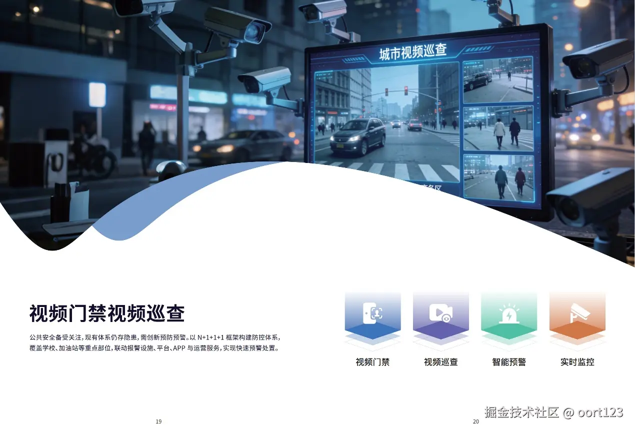 重点部位包括学校、加油站、医院等地点。采用N+1+1+1的总体框架,N个报警监控设施、1个安保平台、1个安保APP/小程序、1项运营服务。如学校门卫值班室应设置一键式紧急报警装置,并与属地接警中心联网。