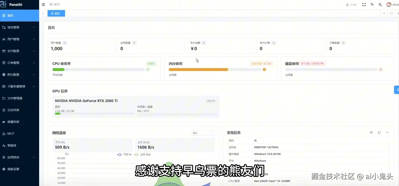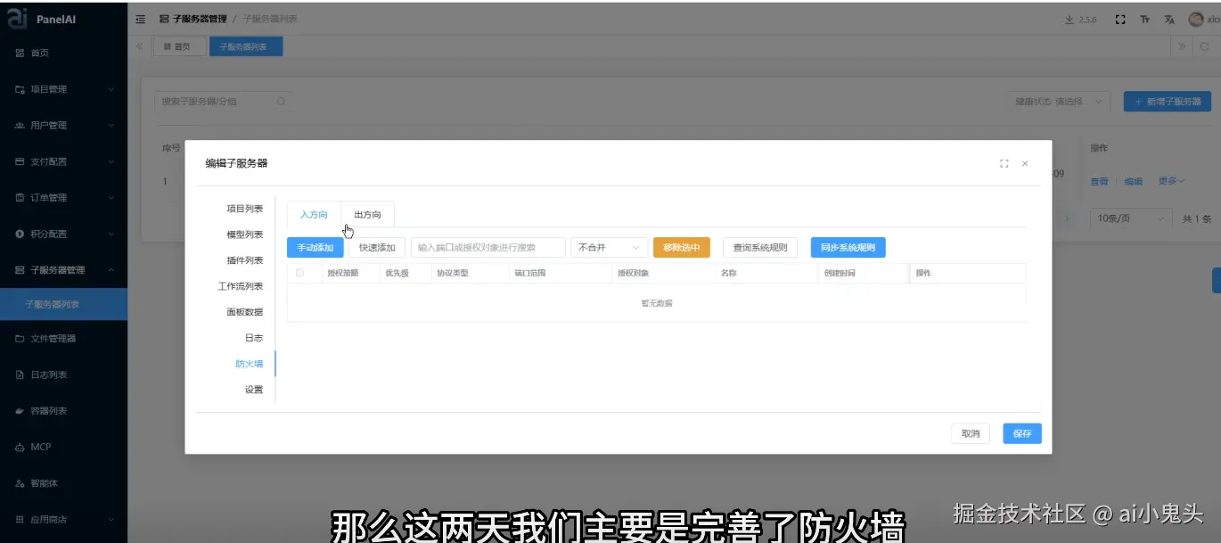熊哥最新视频深夜更新:PanelAI(AI专用服务器管理面板)子服务器管理模块已接近完成,核心实现多节点资源同步与权限隔离。视频从主面板切换子服务器视角,演示真实数据交互,强调“从头到尾都是粉丝+团队+熊哥共同完成”,成就感拉满。