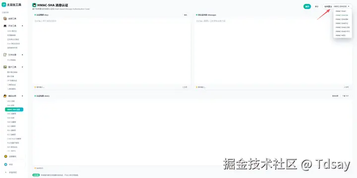 HMAC-SHA 消息认证 - 土豆丝工具 - 在线 HMAC 计算 (HMAC-SHA1/SHA256/SHA512)