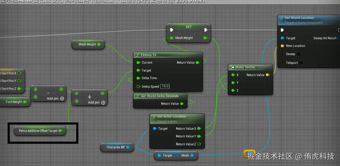这里固定Pelvis我之前尝试过使用PelvisOffset去做,但是不知道是不是因为更新时机或顺序的问题,会延迟一帧,导致强烈抖动。