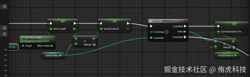 在此阶段我们需要在动作中添加一个曲线,通过这个曲线上的时间来告诉我们脚步还有多久会落下,但正如育碧所言:“Absolutely must be automated”,所以我使用的是UE的AnimationModifier来自动的生成曲线,在其中通过对动画信息进行采样,获取当前帧信息。