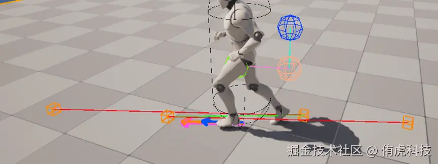 计对于Foot我们仍然要从脚当前位置向上和向下去打一条射线,通过碰撞点得到Trace的脚步位置。