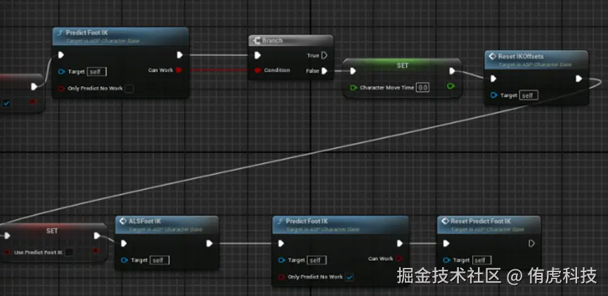 这个PredictIK在奔跑走路时表现良好,但是如果你加上跳跃、停止等就会出现不可预料的问题。同时在角色刚刚起步时预测IK有些数据没有完全更新,其实是有些问题的,所以我选择在停步时候选择常规IK,而在空中取消IK。