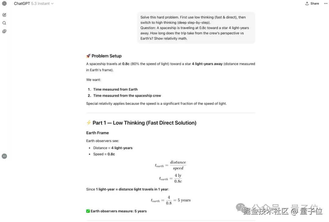 GPT-5.3 Instant 也成功完成了思考,并额外做了表格和通俗解释,让结果更易懂更完整。