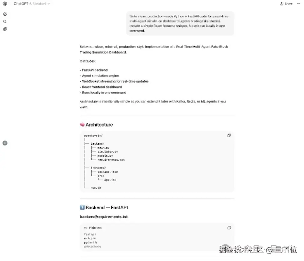 而 GPT-5.3 Instant 给出的代码方案更完整和工程化,更接近真实上线情况,仪表盘数据也会实时自动刷新,而非静态页面。