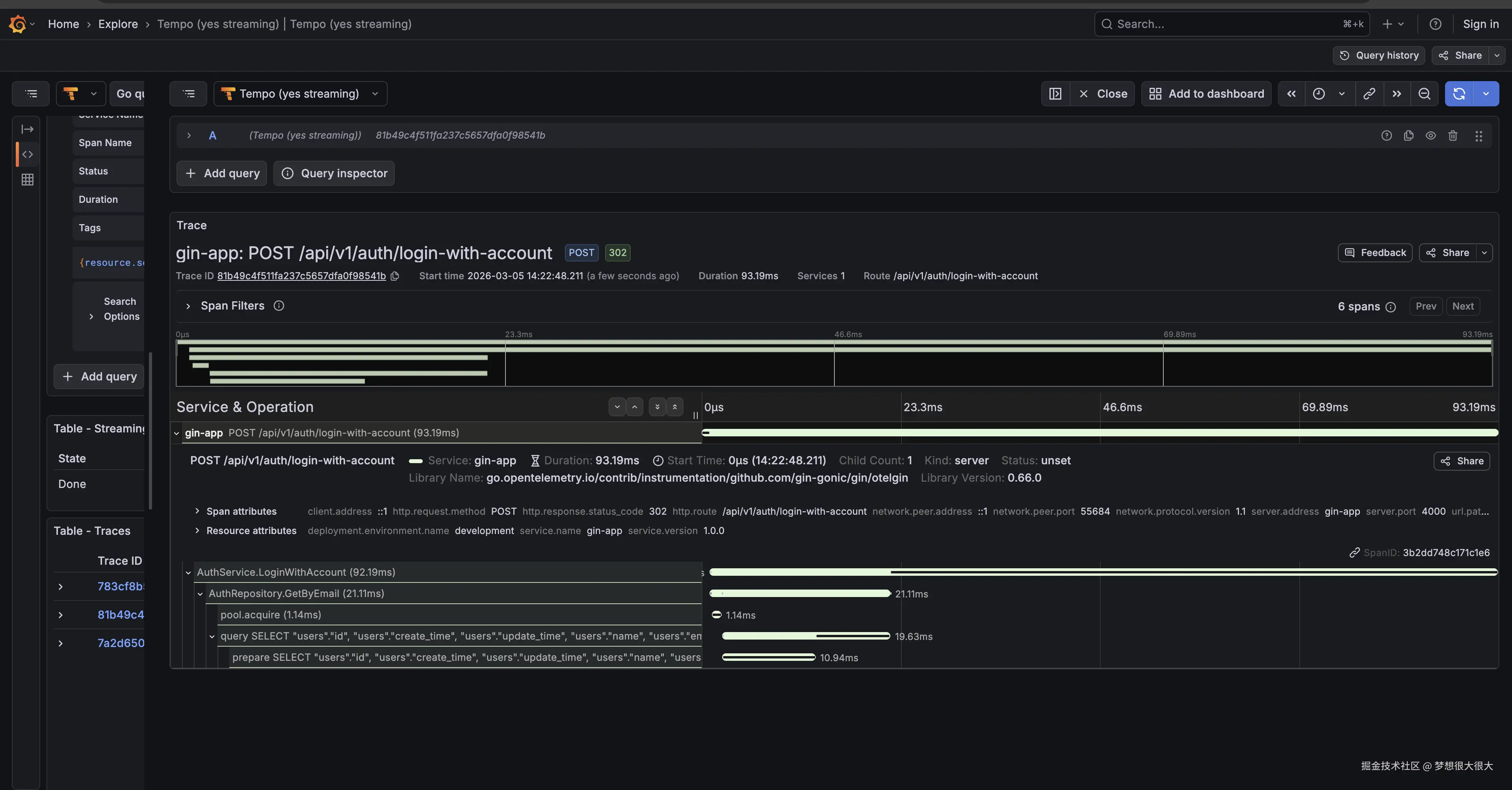 在 gin-app 中引入 OpenTelemetry 和 Grafana Tempo,起初确实会增加一些基建工作量。但从长远来看,它带来的工程效率提升是巨大的。