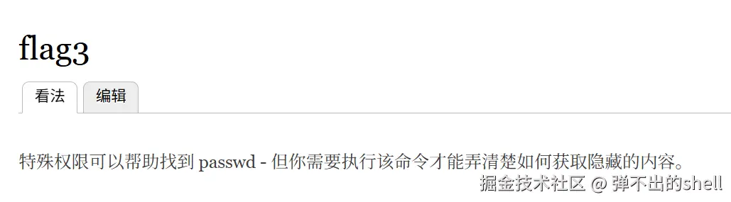 💡 提示:在 root 目录中还有最终 flag,需要提权。