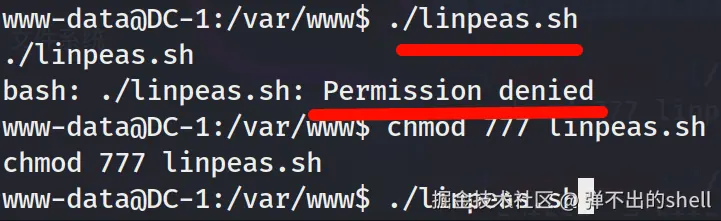 ⚠️ 当前为 www-data 权限,需要进一步提权。
