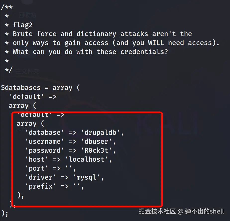 在配置文件中发现 MySQL 数据库账号密码 以及 Flag 2: