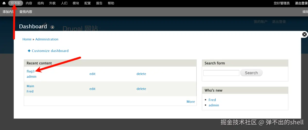 使用破解的账号登录 Drupal 后台:http://192.168.67.131/user/login