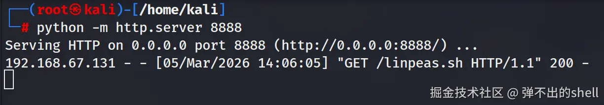 靶机无法访问外网,通过 Kali 中转传输文件。