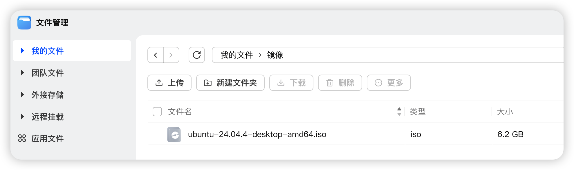 下载完成后,把镜像文件上传到 NAS 的存储空间里备用。