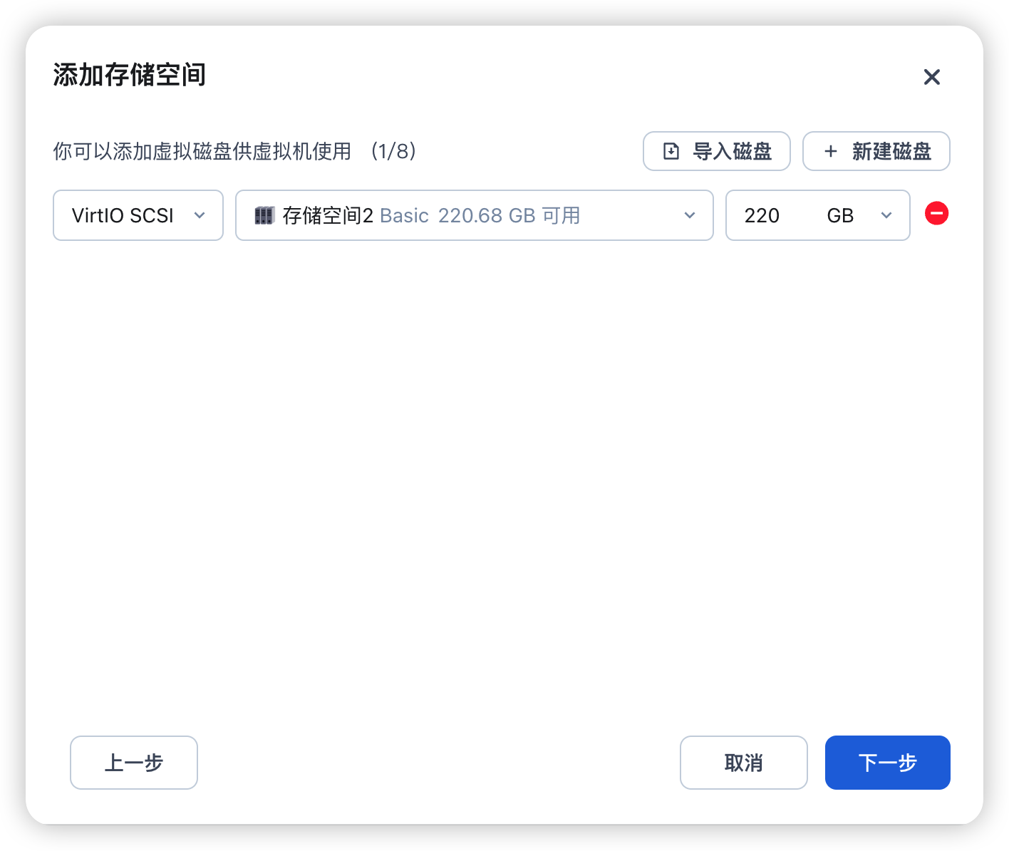 然后分配虚拟机磁盘空间,我这里直接分配了一块 256G 固态硬盘给它使用。